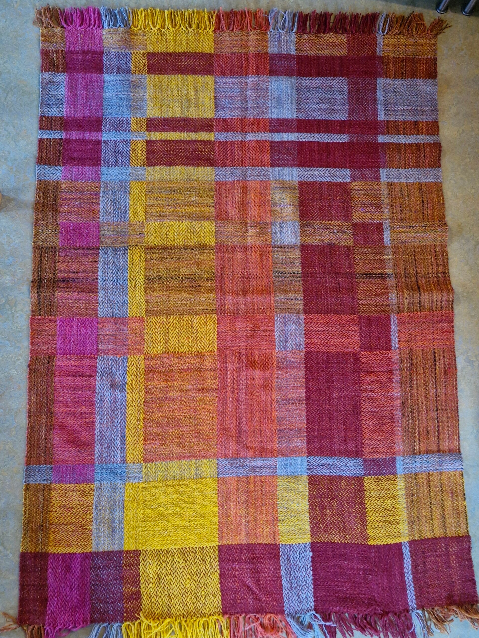 Deken foto 7 en 8 (geruit rood, groen, geel, roze, grijs): 460 euro VERKOCHT