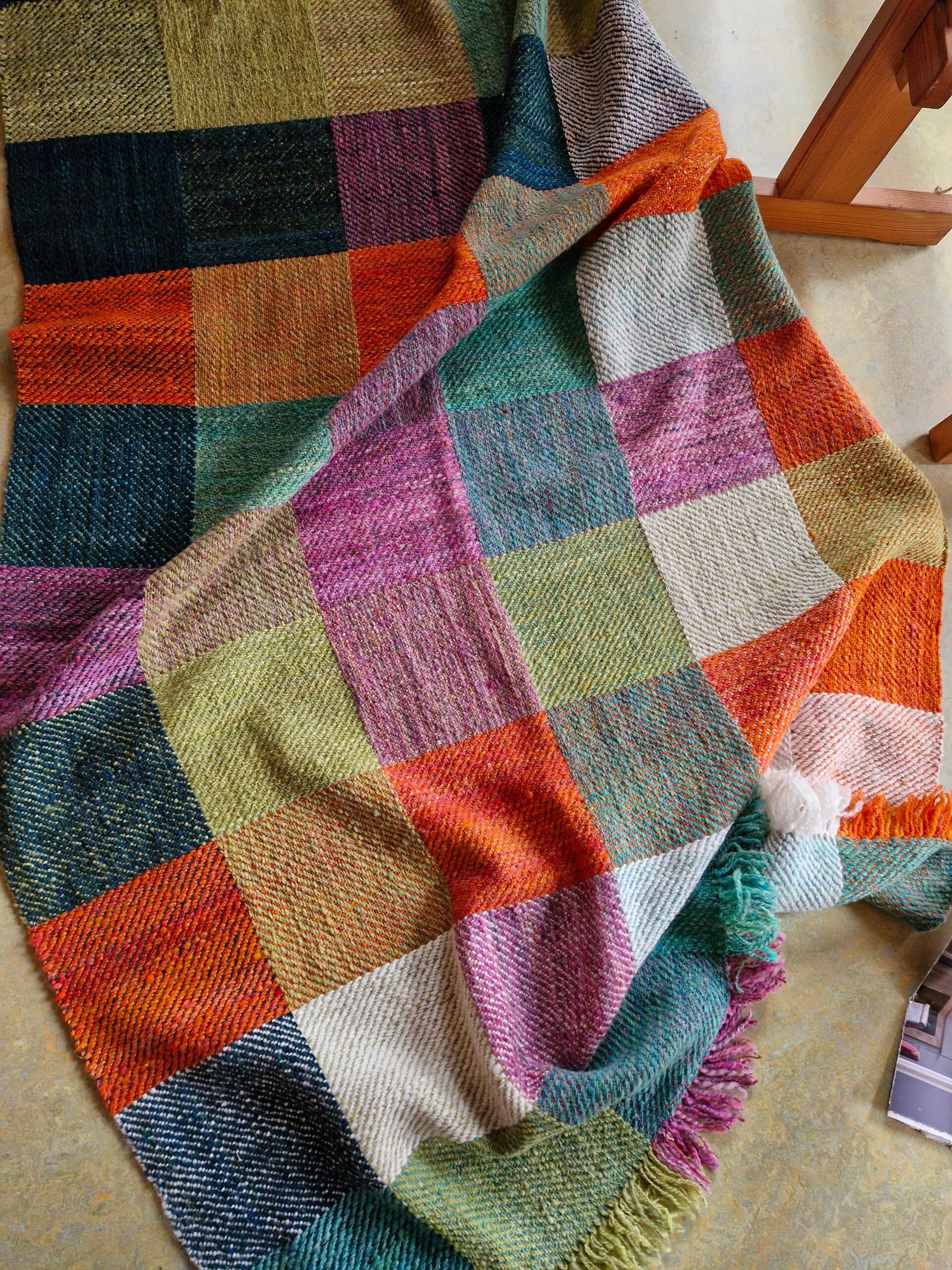 Deken foto 3 en 4 (geblokt oranje, wit, groen, turquoise, paars, donkergroen): 360 euro